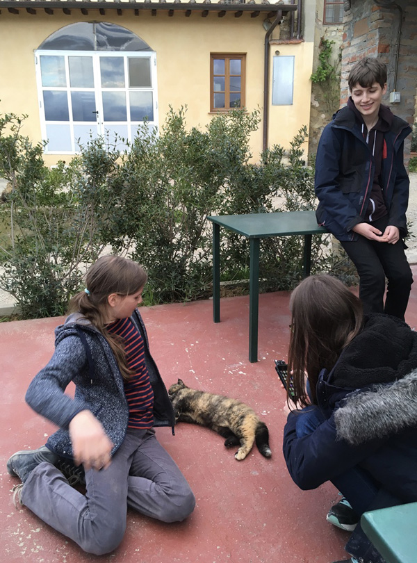 While all of our four kids were smaller, we had travelled to Foehr and to Denmark together, visiting Legoland, feeding sheep, playing with snails, cruising around with the kids all tucked into bike trailers. Such a difference to this funny group of teens (or soon-to-be-teens), that now start conversations on their own and enjoy all kinds of food and read - to some extent - the literature that we also enjoy. Lucky us being in beautiful Tuscany!